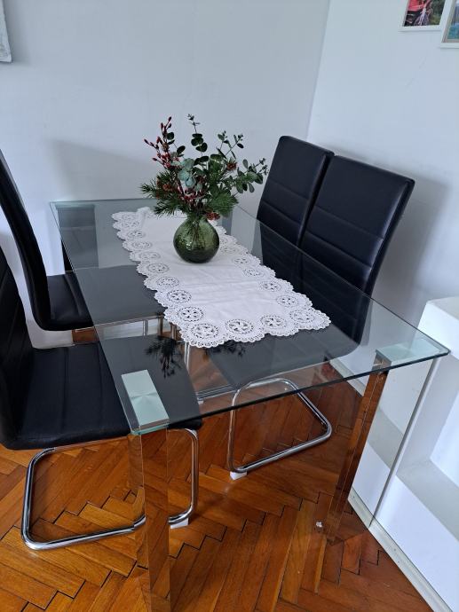 Stakleni stol sa cromiranim nogama, dobrl očuvan. Dimenzije 140/80/74