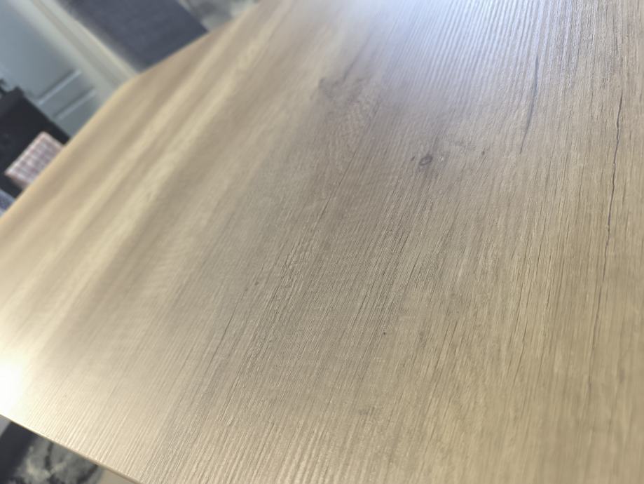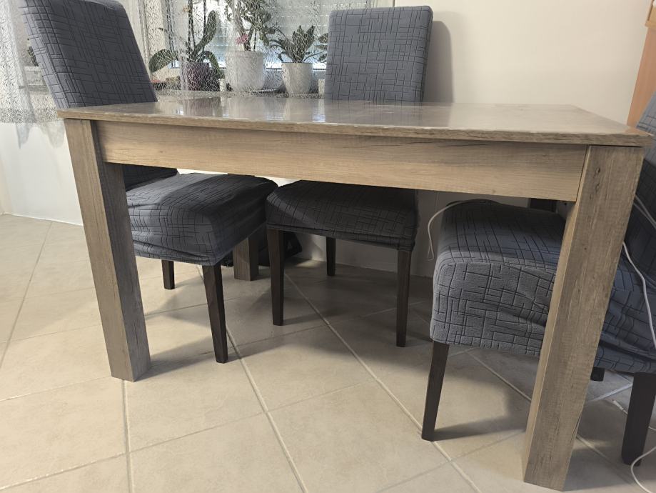Star malo preko godinu dana. Od prvog dana sa prozirnom zaštitom koja se dobija uz stol. Bez ikakvih oštećenja. Kao da je iz salona.