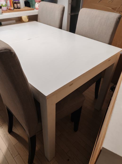 Prodajem Ikea blagovaonski stol i 4 stolice u dobrom stanju. Moze komplet moze i posebno stol i stolice. Cijena je za komplet.