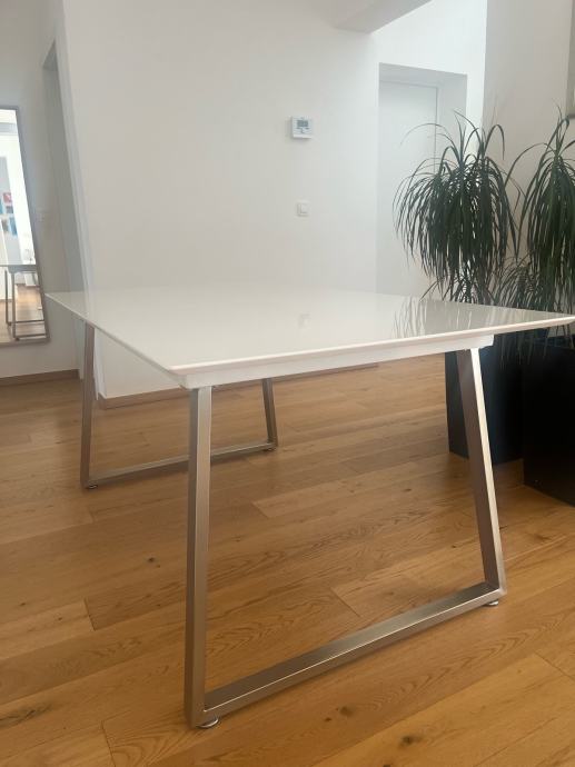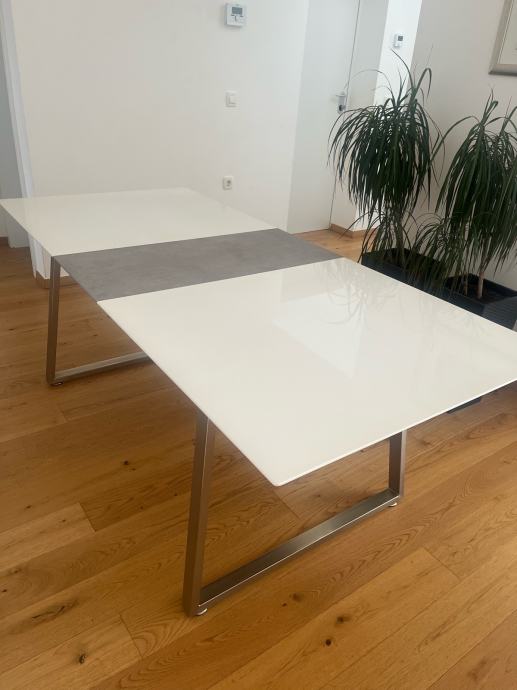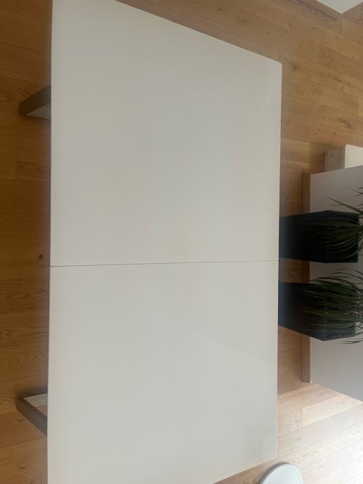 - bijeli blagovaonski stol (dimenzija 160x90 cm) s umetkom za proširenje na sredini (dimenzija 40x90 cm) u kompletu sa