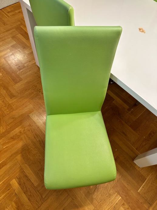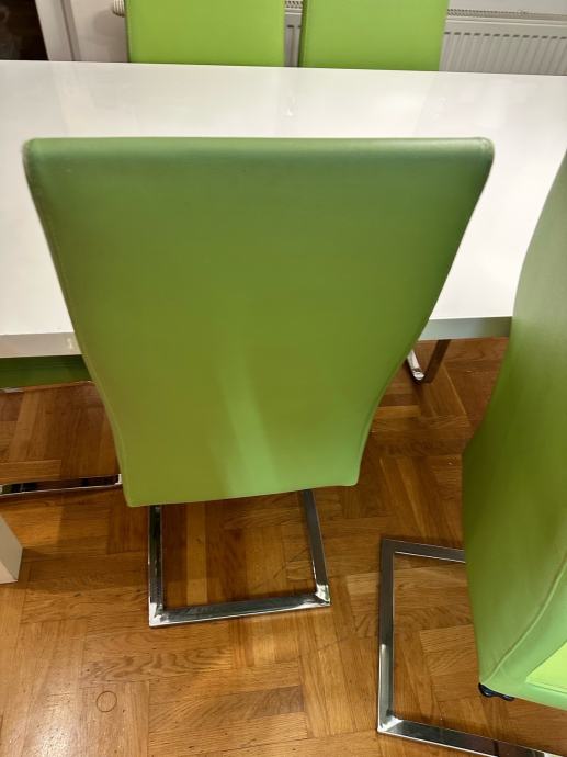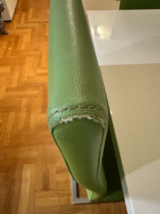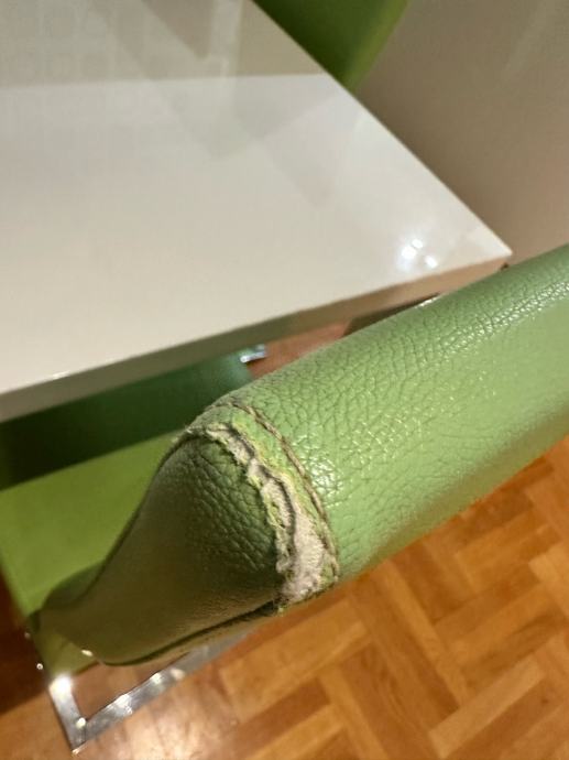 Ostecenja su vidljiva na slikama, dvije stolice je na rubovima naslona izgrizla mala papiga (slike). Drugi stolci su neosteceni.