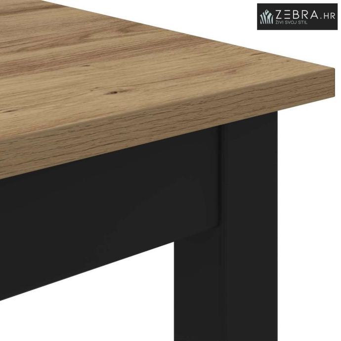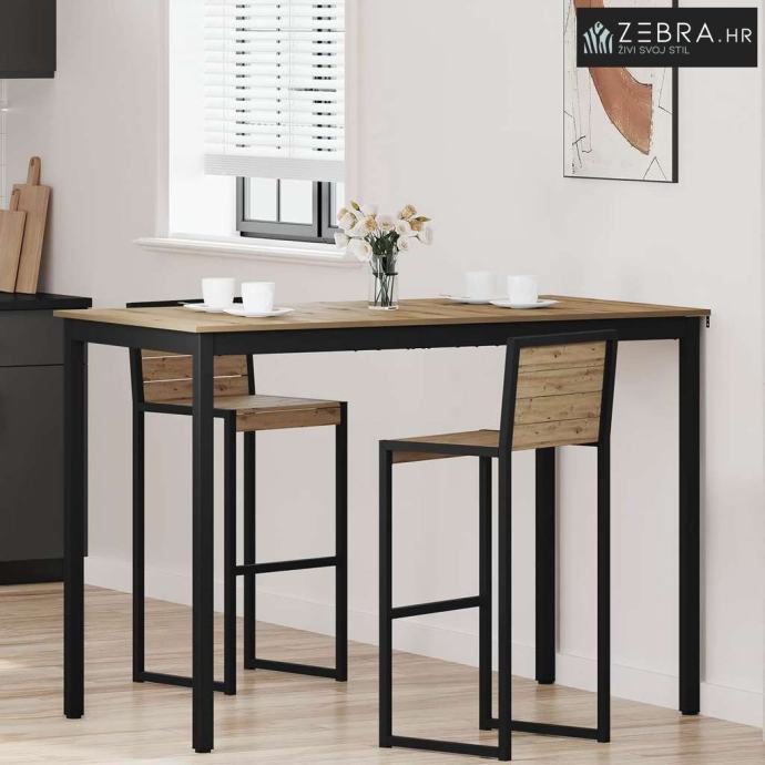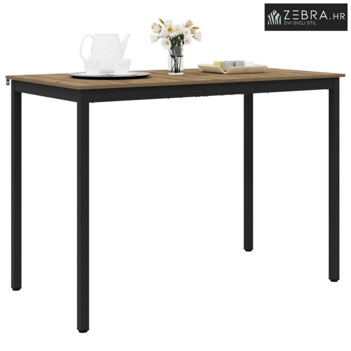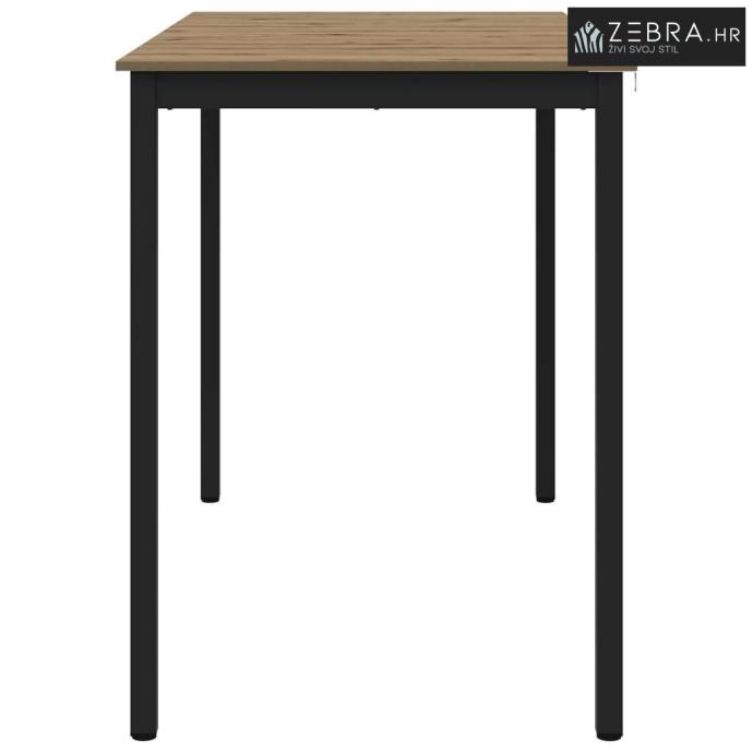 Čvrsti materijali: Površina od konstruiranog drva daje mu trajnost i lijep izgled. Metalne noge su robusne i pružaju stabilnost, osiguravajući da stol izdrži svakodnevnu upotrebu bez gubitka stila.