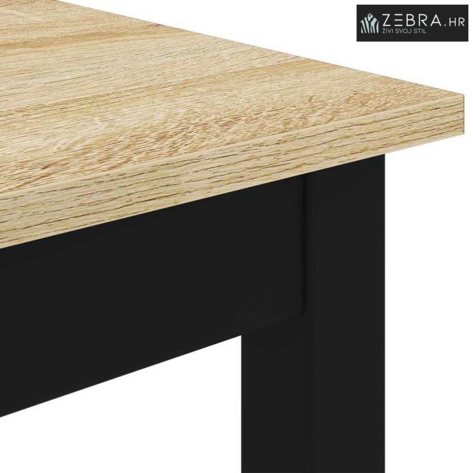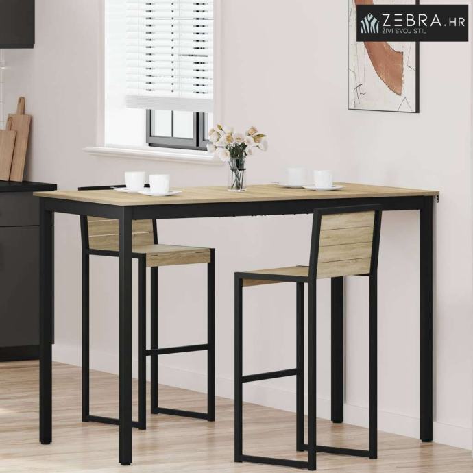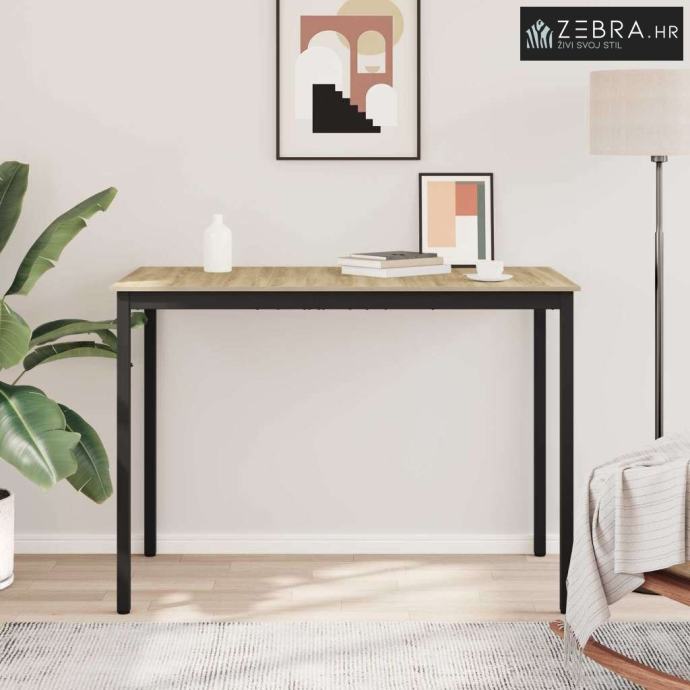 Čvrsti materijali: Površina od konstruiranog drva daje mu trajnost i lijep izgled. Metalne noge su robusne i pružaju stabilnost, osiguravajući da stol izdrži svakodnevnu upotrebu bez gubitka stila.