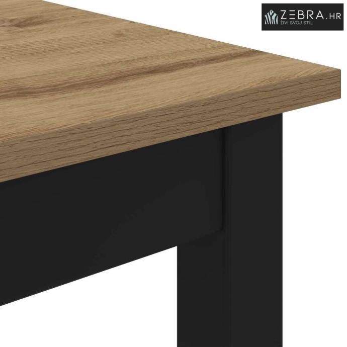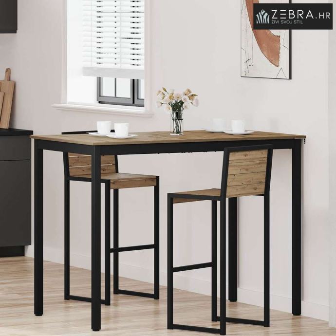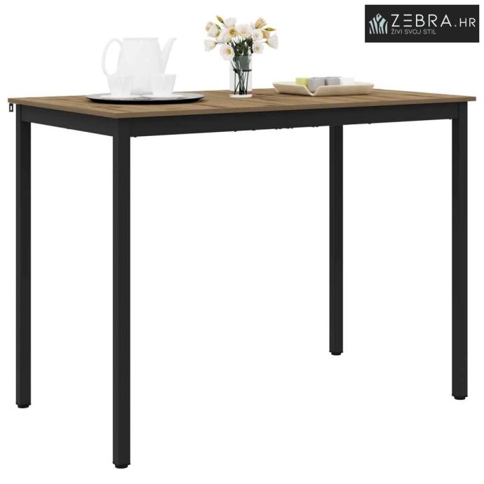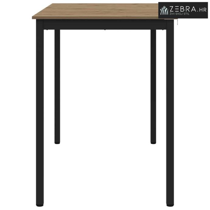 Čvrsti materijali: Površina od konstruiranog drva daje mu trajnost i lijep izgled. Metalne noge su robusne i pružaju stabilnost, osiguravajući da stol izdrži svakodnevnu upotrebu bez gubitka stila.