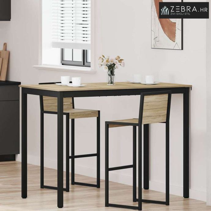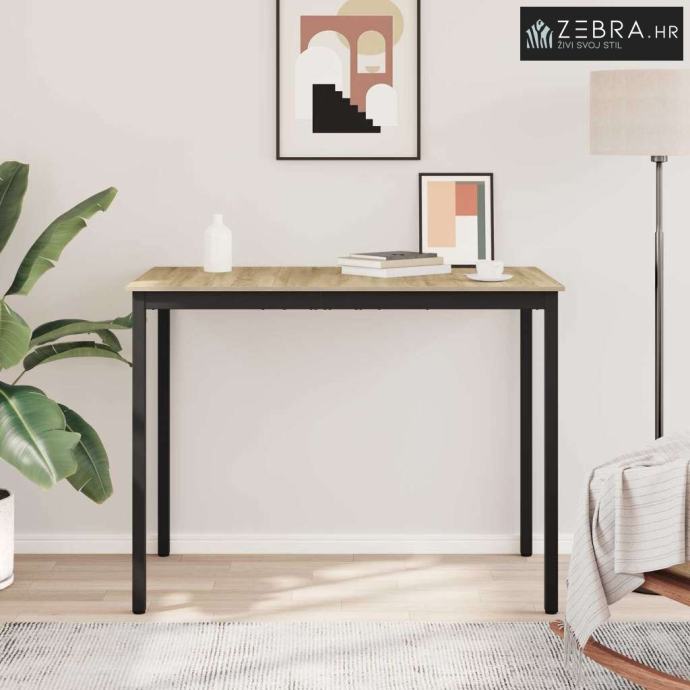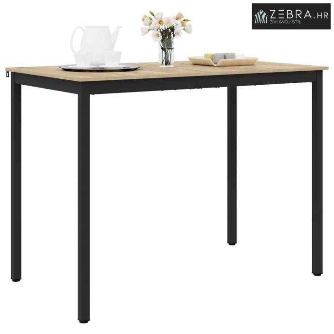 Čvrsti materijali: Površina od konstruiranog drva daje mu trajnost i lijep izgled. Metalne noge su robusne i pružaju stabilnost, osiguravajući da stol izdrži svakodnevnu upotrebu bez gubitka stila.