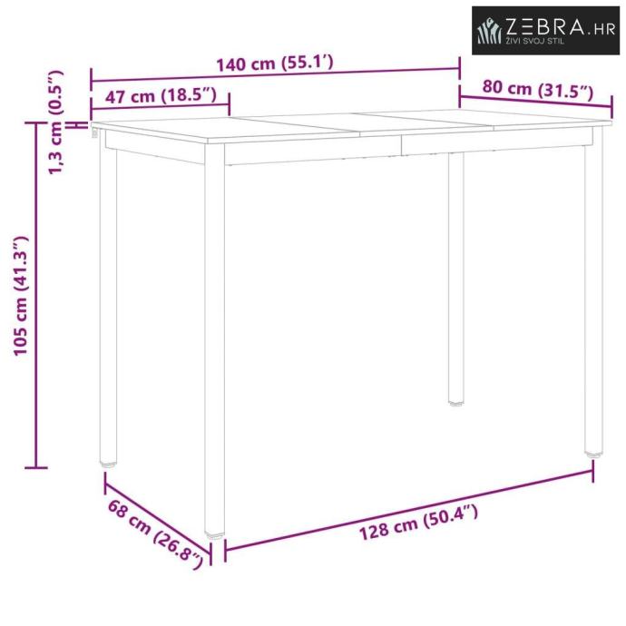 Funkcionalan dizajn: S pravokutnim oblikom, ovaj stol prilagođava se različitim prostorima i rasporedima, a dimenzije ga čine savršenim za intimne obroke ili veća okupljanja, povećavajući njegovu upotrebljivost.