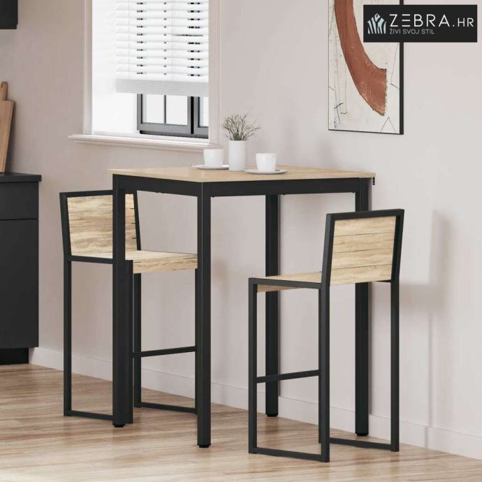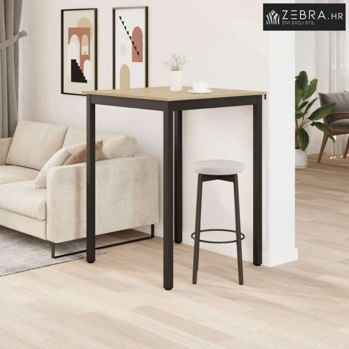 Čvrsti materijali: Površina od konstruiranog drva daje mu trajnost i lijep izgled. Metalne noge su robusne i pružaju stabilnost, osiguravajući da stol izdrži svakodnevnu upotrebu bez gubitka stila.