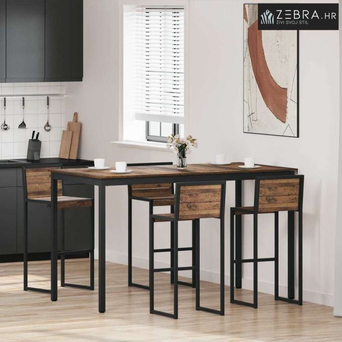 Čvrsti materijali: Površina od konstruiranog drva daje mu trajnost i lijep izgled. Metalne noge su robusne i pružaju stabilnost, osiguravajući da stol izdrži svakodnevnu upotrebu bez gubitka stila.