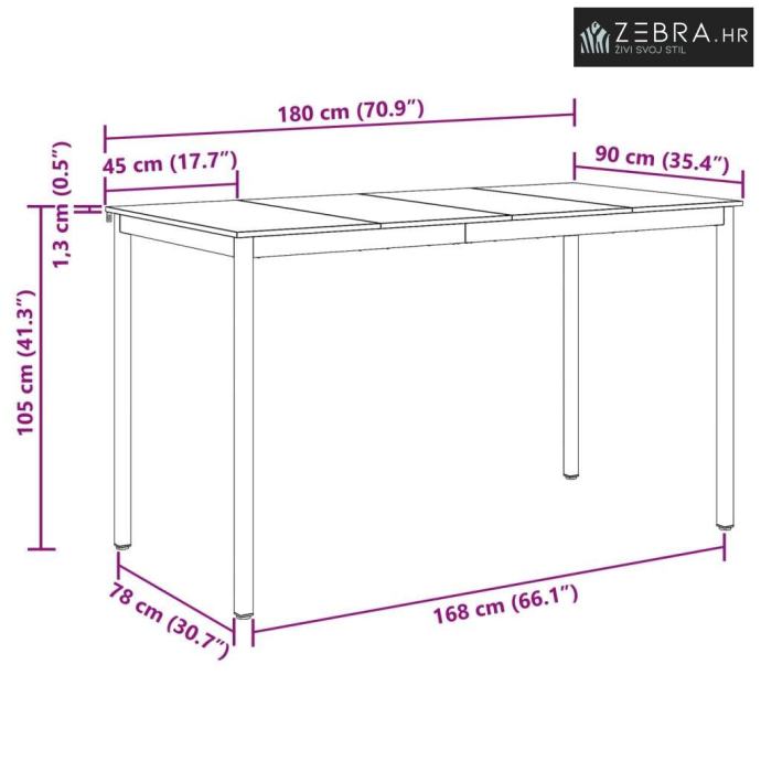 Funkcionalan dizajn: S pravokutnim oblikom, ovaj stol prilagođava se različitim prostorima i rasporedima, a dimenzije ga čine savršenim za intimne obroke ili veća okupljanja, povećavajući njegovu upotrebljivost.