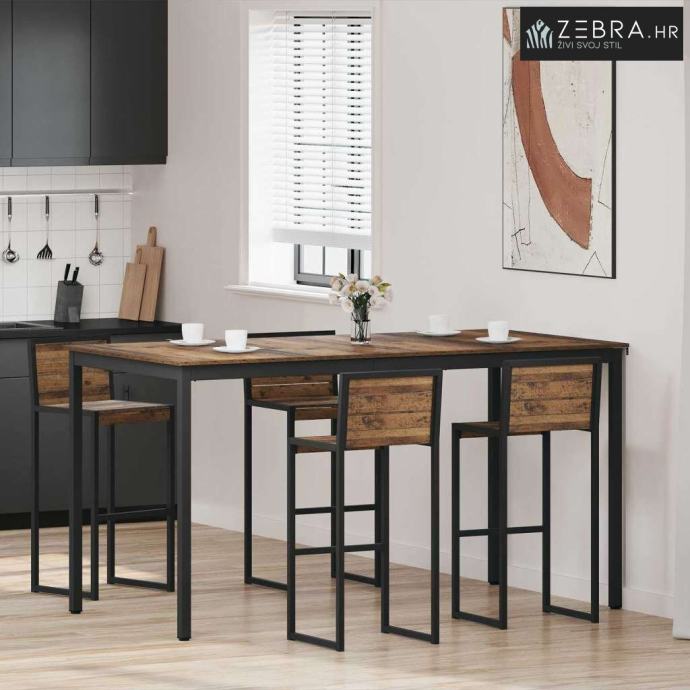 Čvrsti materijali: Površina od konstruiranog drva daje mu trajnost i lijep izgled. Metalne noge su robusne i pružaju stabilnost, osiguravajući da stol izdrži svakodnevnu upotrebu bez gubitka stila.