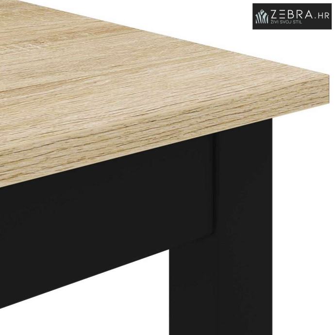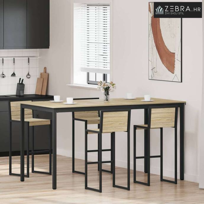 Čvrsti materijali: Površina od konstruiranog drva daje mu trajnost i lijep izgled. Metalne noge su robusne i pružaju stabilnost, osiguravajući da stol izdrži svakodnevnu upotrebu bez gubitka stila.