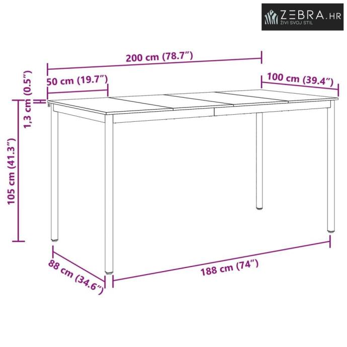 Funkcionalan dizajn: S pravokutnim oblikom, ovaj stol prilagođava se različitim prostorima i rasporedima, a dimenzije ga čine savršenim za intimne obroke ili veća okupljanja, povećavajući njegovu upotrebljivost.