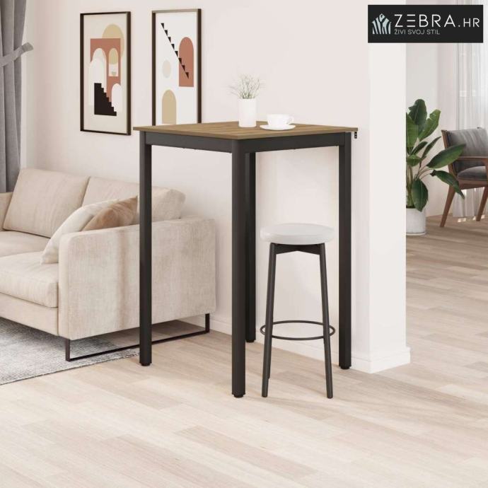 Čvrsti materijali: Površina od konstruiranog drva daje mu trajnost i lijep izgled. Metalne noge su robusne i pružaju stabilnost, osiguravajući da stol izdrži svakodnevnu upotrebu bez gubitka stila.