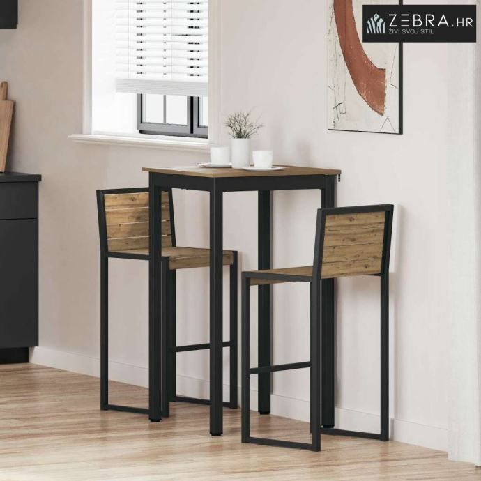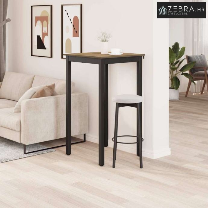 Čvrsti materijali: Površina od konstruiranog drva daje mu trajnost i lijep izgled. Metalne noge su robusne i pružaju stabilnost, osiguravajući da stol izdrži svakodnevnu upotrebu bez gubitka stila.