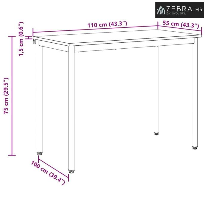 Sveukupne dimenzije: 110 x 55 x 75 cm (D x Š x V)