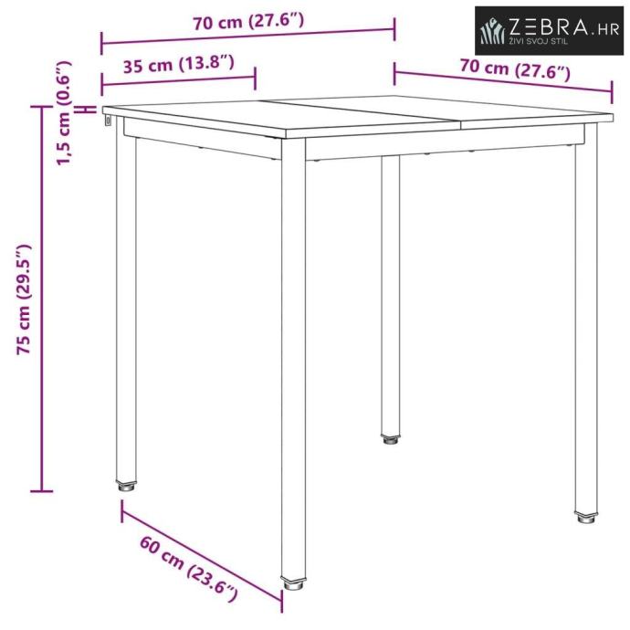 Sveukupne dimenzije: 70 x 70 x 75 cm (D x Š x V)