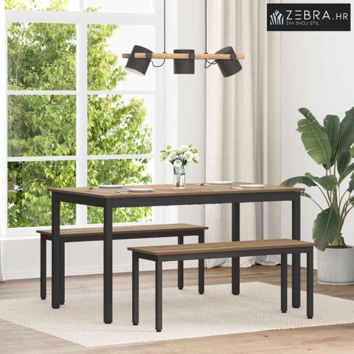 Crni metalni okvir Elegantni crni metalni okvir jamči čvrstu podršku, pružajući stabilnost za stol. Njegov suvremeni dizajn savršeno se uklapa u moderni dekor, idealan za blagovaonice i prostrane dnevne sobe.