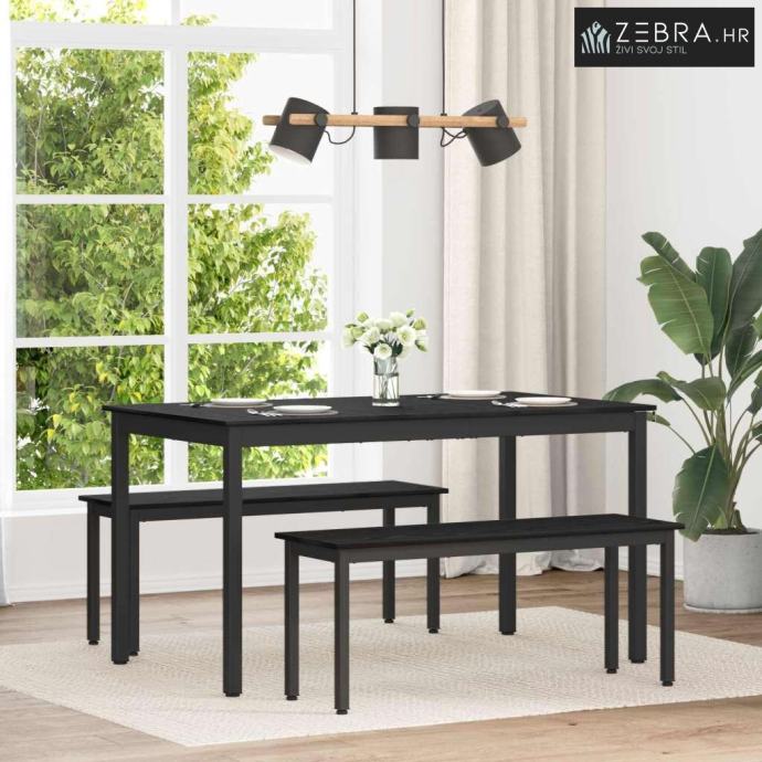 Crni metalni okvir Elegantni crni metalni okvir jamči čvrstu podršku, pružajući stabilnost za stol. Njegov suvremeni dizajn savršeno se uklapa u moderni dekor, idealan za blagovaonice i prostrane dnevne sobe.