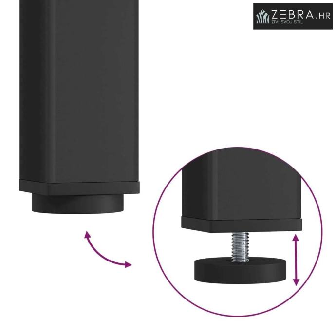 Četvrtaste metalne noge Ove četvrtaste noge podižu moderan izgled stola i daju mu solidnu osnovu. S dugotrajnim performansama, noge osiguravaju stabilnost i čuvaju integritet stola tokom vremena. Savršeno za sve koji žele sigurnost za svoje blagovanje.