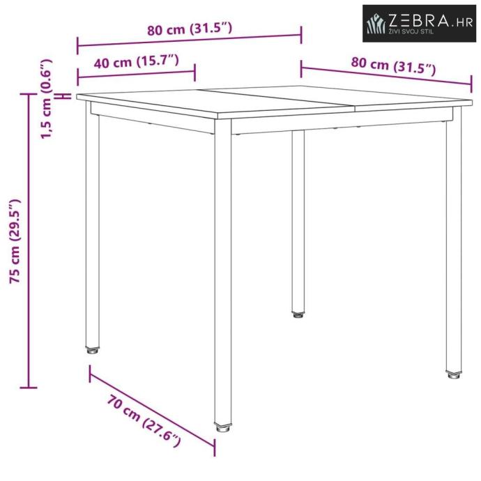 Sveukupne dimenzije: 80 x 80 x 75 cm (D x Š x V)