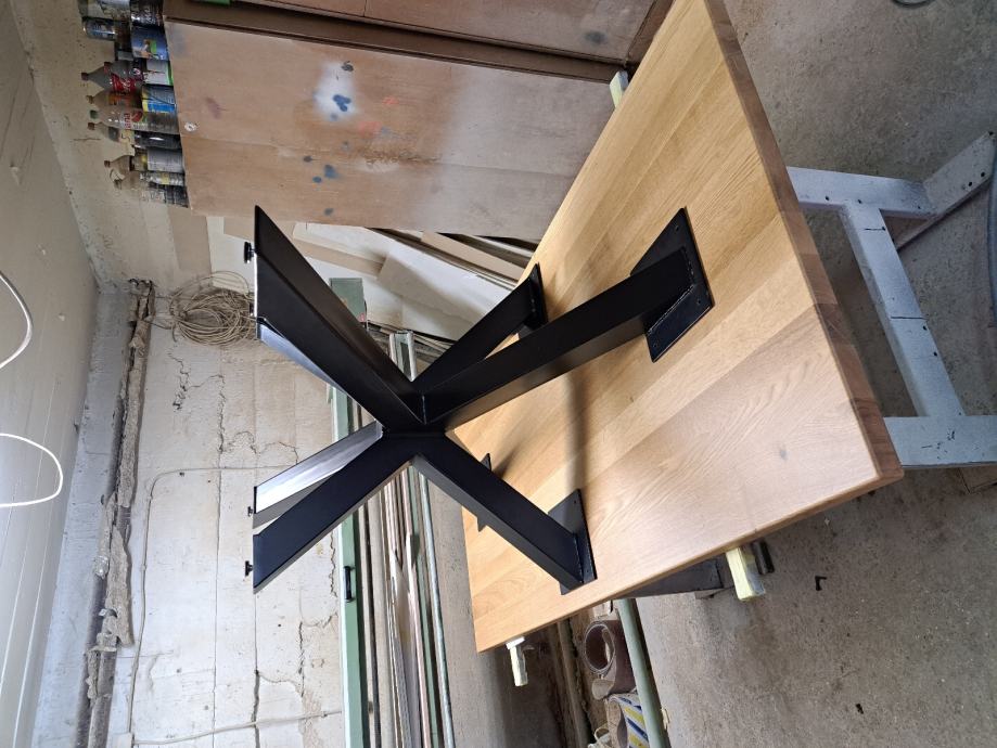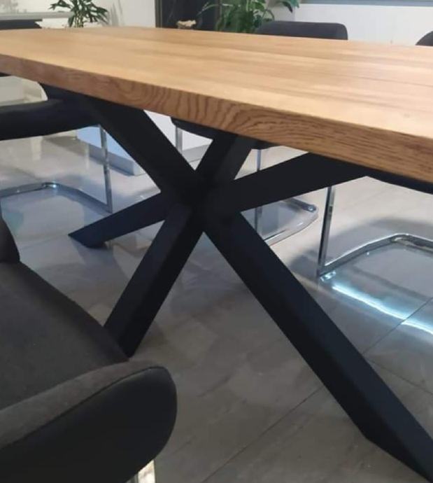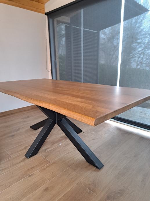 Podaje se Masivni stol za blagovaonu sa metalnim nogama i postoljem. Dimenzije stol 180x90