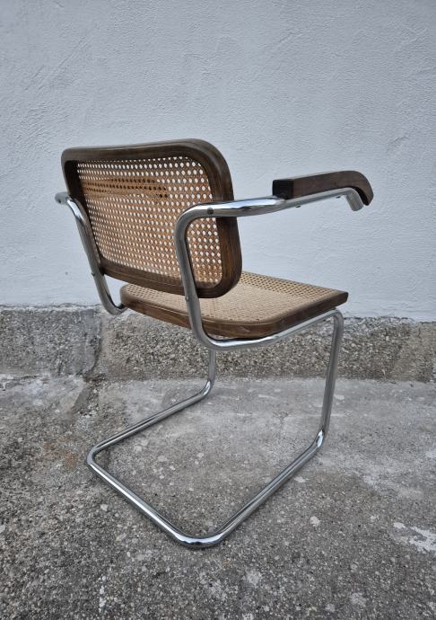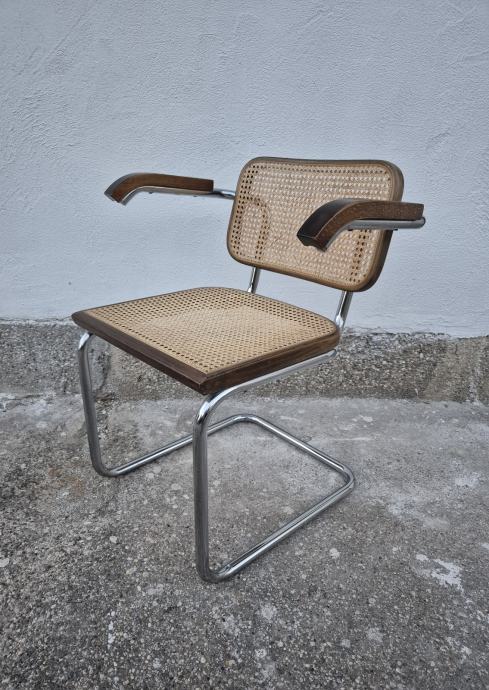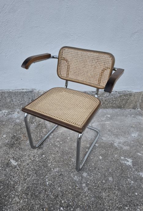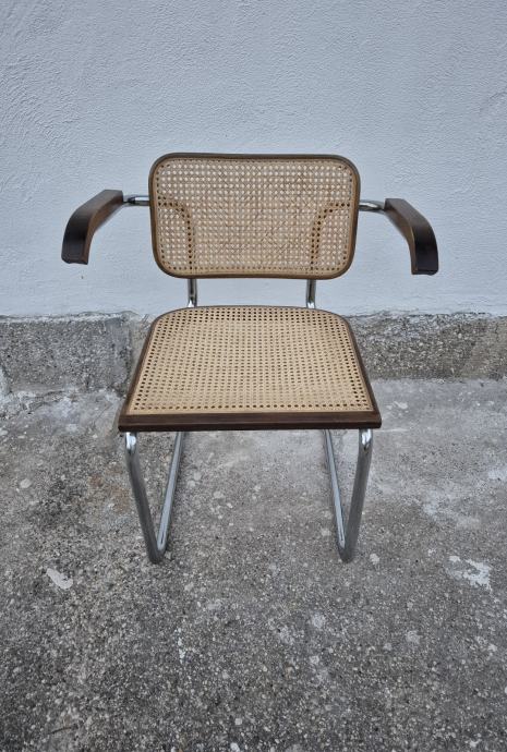 Cesca stolica, dizajn Marcel Breuer, rjeđi model s rukonaslonima, u izvornom vintage stanju, očuvana.