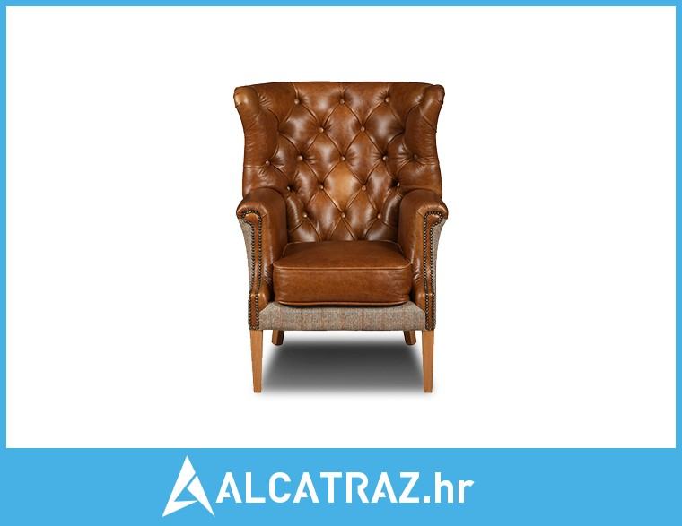 Izdržljiva Chesterfield fotelja s prekrasnim završetkom i odličnom udobnošću sjedenja zahvaljujući nešto višem mekanom naslonu i udobnom srednjem jastuku. Ova kombinacija vune i kože Harris Tweed integrirana u Chesterfield fotelju stvara jedinstven izgled.