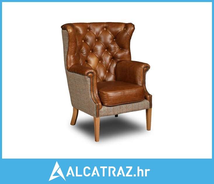 ***POSJETITE NAŠ SHOWROOM I UVJERITE SE U ENGLESKU KVALITETU*** ```html Chesterfield Harris Tweed fotelja Wallflower od čiste nove vune i goveđe kože