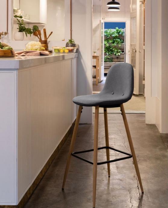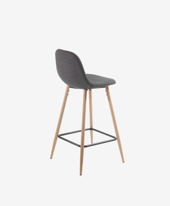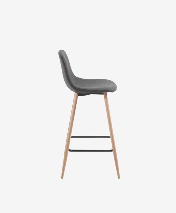 Ova Nolite barska stolica je jednostavnog dizajna zaobljenog oblika. Drveno sjedište je tapecirano je u tamno sivu tkaninu ukrašeno sa dva gumba koje daje eleganciju. Struktura nogu je od metala sa efektom drva hrasta. Svaka noga stolice ima podložak kao zaštitu za parket. Krajnje dimenzije stolice širina: 47 cm, dubina: 48 cm, visina s naslonom 91 cm. Visina sjedišta 65 cm, širina sjedišta 41 cm, dubina sjedišta 35 cm i visina naslona 26 cm.
