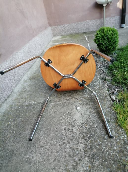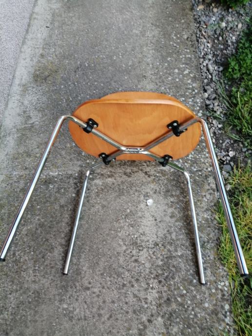 Prodajem stolicu s drvenim sjedistem i celicnim postoljem ispravan.Ne saljem postom.