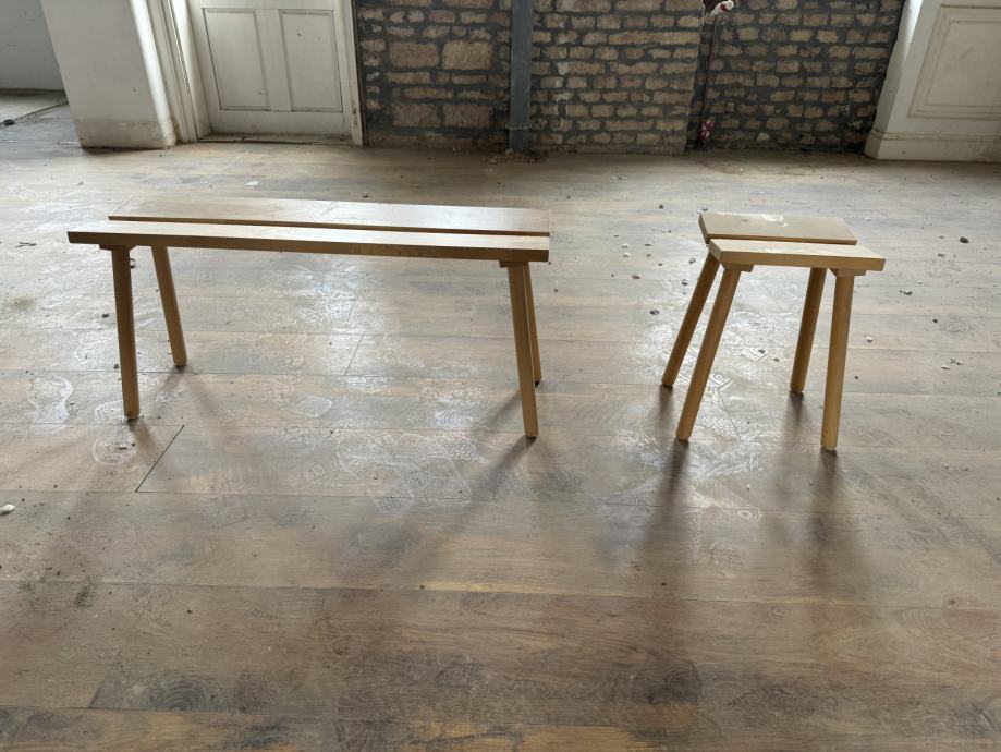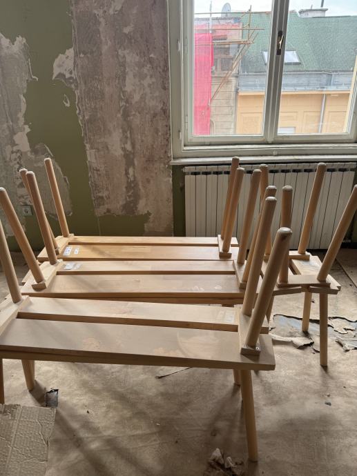 Prodajem 6 dužih Ikea drvenih klupica i 2 manja stolčića iz iste kolekcije. Mogu poslužiti kao klupice (stolice) za stol, garderobu, kao klupice ispred ili pokret kreveta i slično.