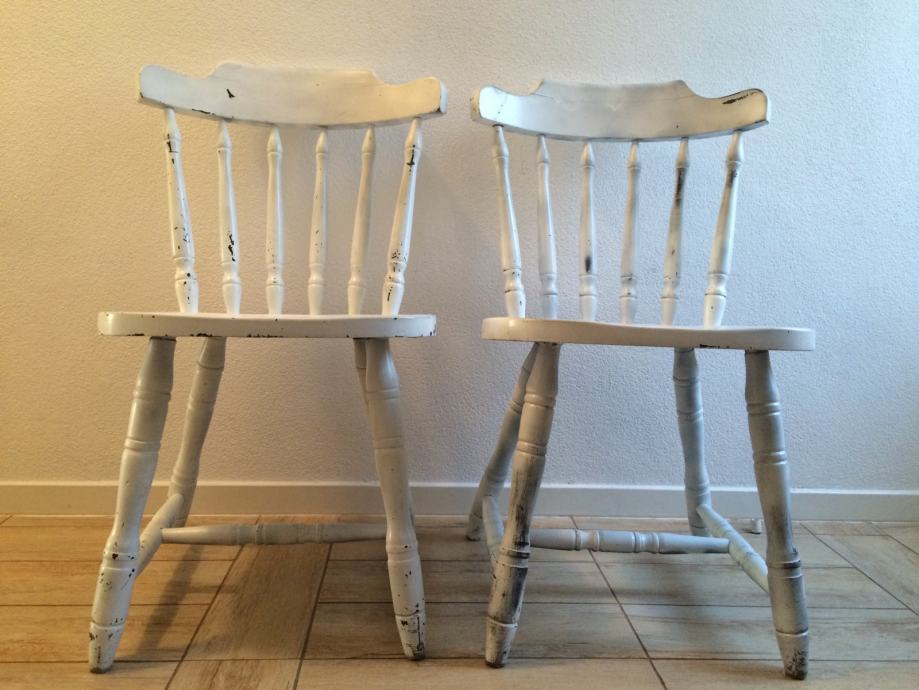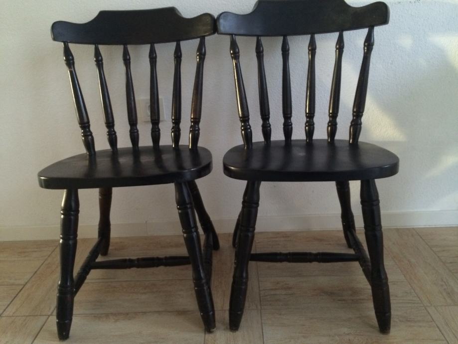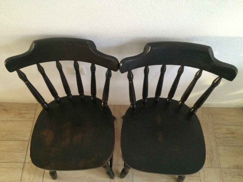 Prodajem 4 stare drvene stolice. Dvije su crne, a dvije bijele. Stolice se nalaze u Makarskoj. Cijena po komadu je 100 kn.