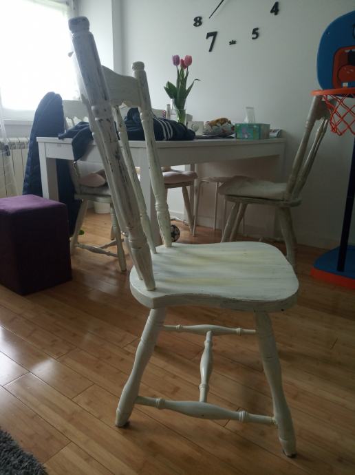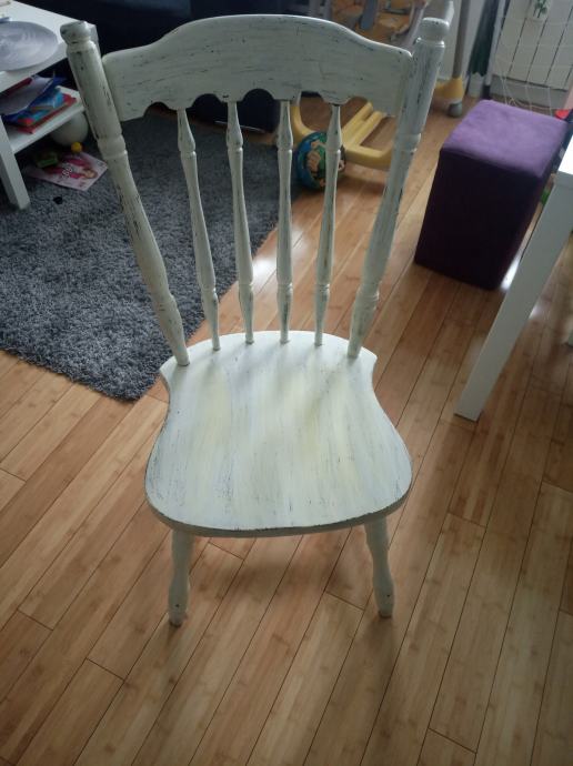 5 drvenih stolica od punog drveta uredenih u decoupage stilu. Uz njih idu i jastuci za sjedenje kupljeni u ikei. Moguca kupnja i pojedinacno.