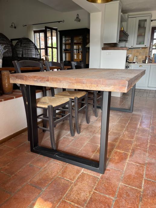 Vrh je debljine oko 4 cm i dupliran je na 7 cm. Dužina ploče stola je 200 cm, širina 100 cm. visina stola je 76 cm.