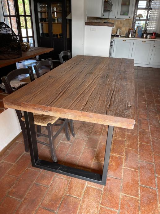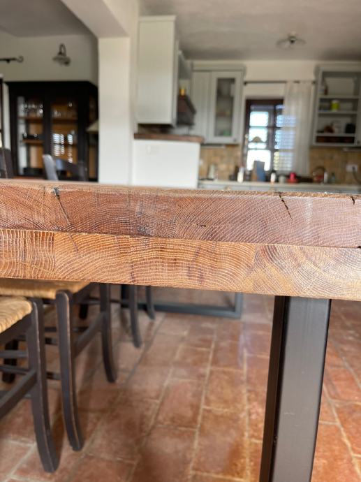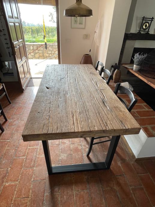 Prodajem masivni stol za blagovaonu sa 6 stolica. Staro hrastovo drvo, brušeno. Nekoliko puta tretirano uljem topivim u vodi. Površina je glatka unatoč strukturi.