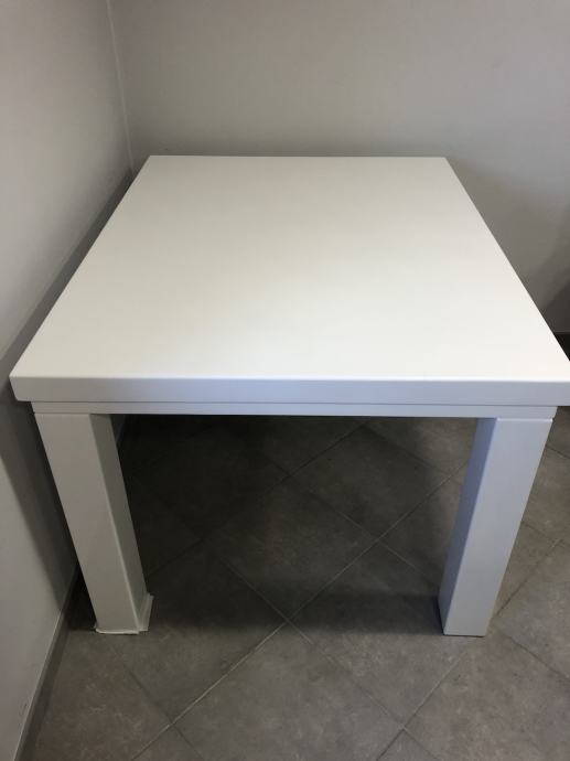 Drveni masivni stol,bijela visoki sjaj,malo koristen…dimenzija 120x94x77…noge 10x10…prilicno tezak…masivan…domaca izrada.Cijena 350 eura