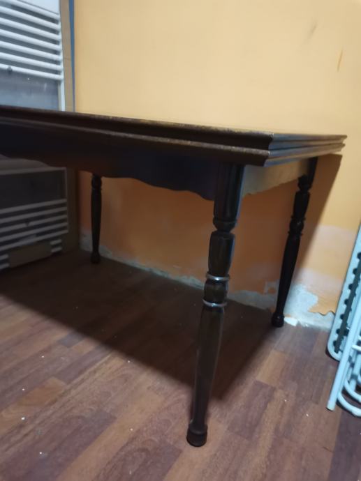 Prodaje se drveni stol masivni, puno drvo, razvlači se. Dimenzija d-120-155-190, š-85, v-77cm. Stol je u dobrom stanju, čvrst, nije klimav. Vidljivi tragovi korištenja na dijelu koji se izvlači. U kompletu idu i 2 drvene stolice.