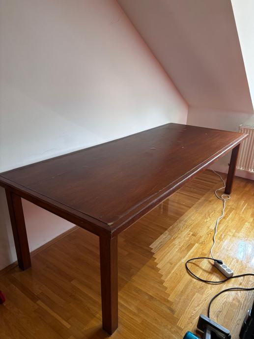 Prodajem drveni blagovaonski stol sa slika. Dimenzije navedenog stola su 100 × 250 cm.