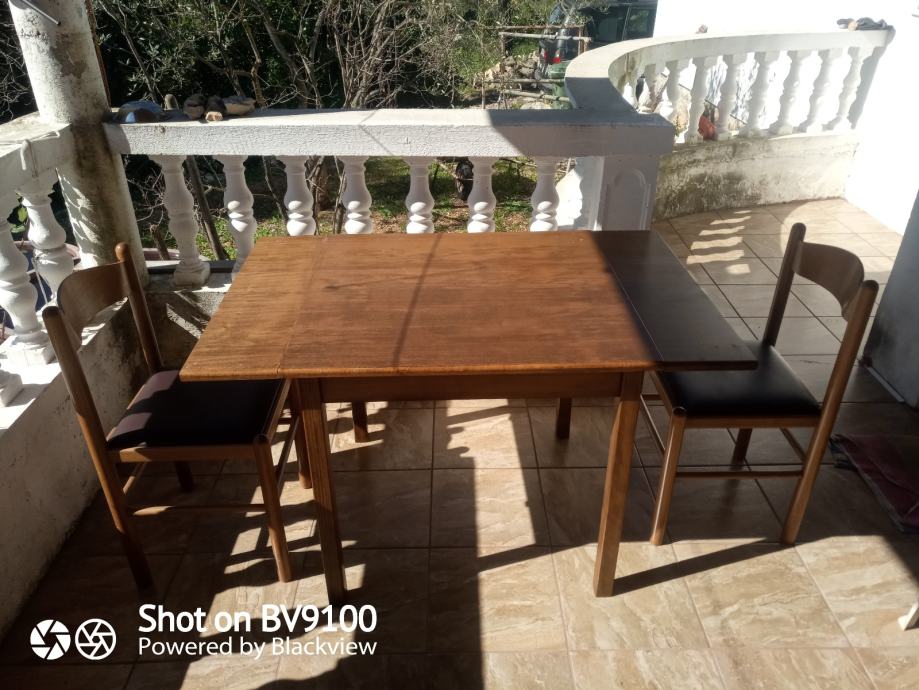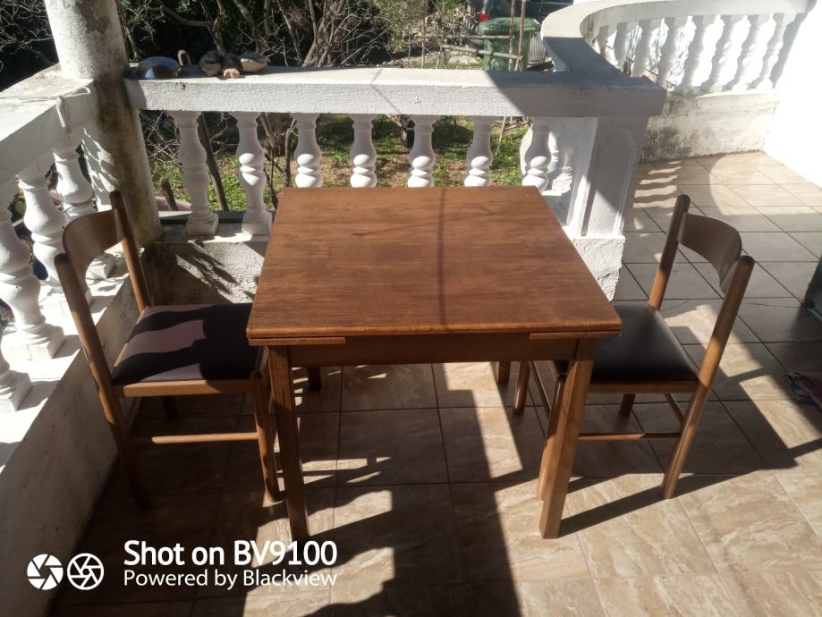 Drveni stol na razvlačenje 80x80 + dvije stolice / masivno drvo