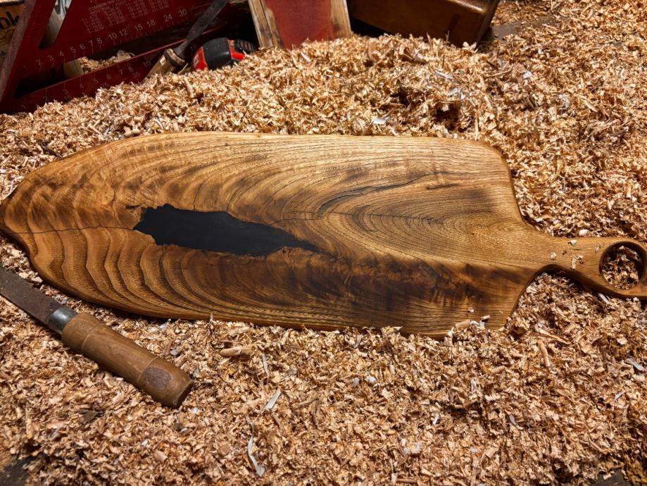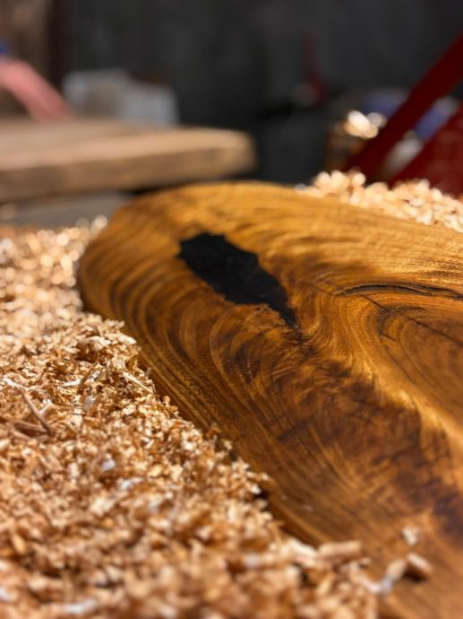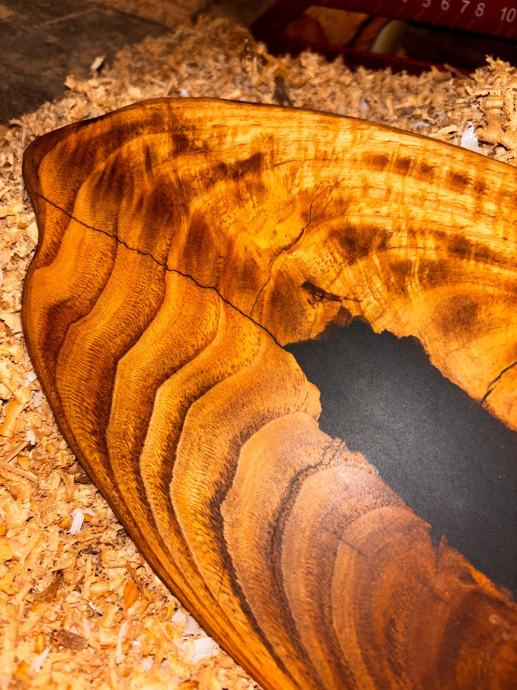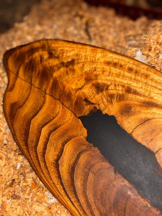 Prirodno drvo, izraženi godovi i detalj od crne epoksidne smole!