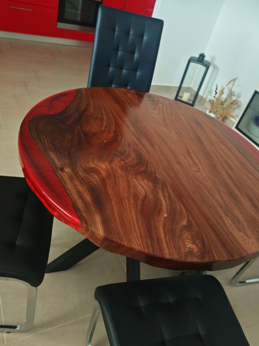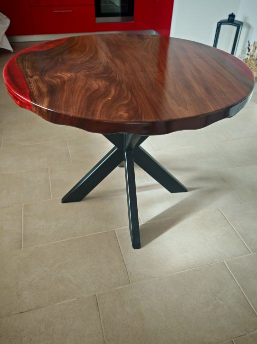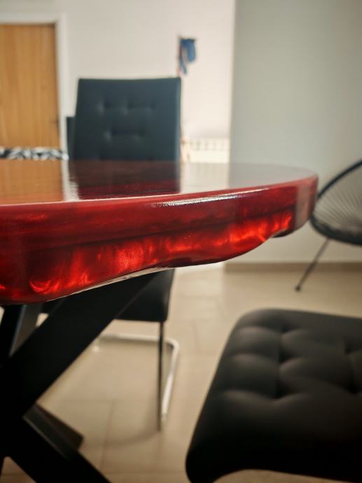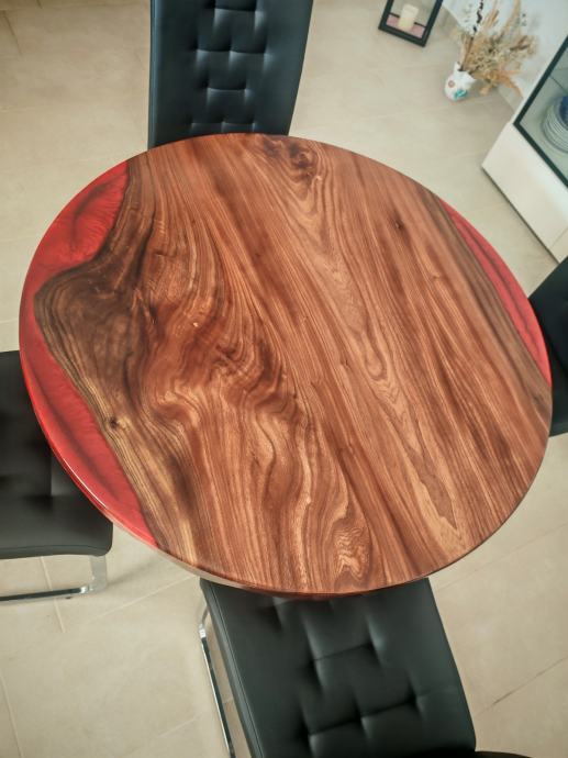 Prodajem blagavaonski stol sa drvom brijesta i epoxy smolom u crvenoj kombinaciji, promjer stola je 100 cm i visine 75 cm, moguća dostava.