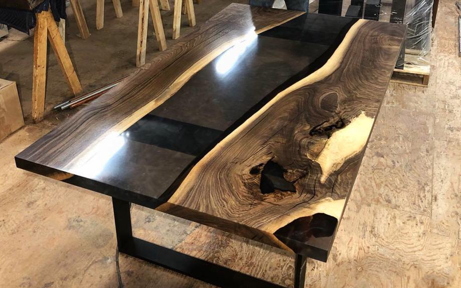 Mogucnost proizvodnje unikatnih stolova sa dodatkom epoxy smole i moderan stil nogu stola. Sve proizvodimo po narudzbi i željama kupaca ..cijena ovisi o vrsti drva,vrsti nogu i količini smole potrebne za izradu stola. Slike koje su dodane su primjer moguce izrade stola .