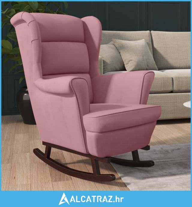 Fotelja za ljuljanje s drvenim nogama ružičasta baršunasta - NOVO