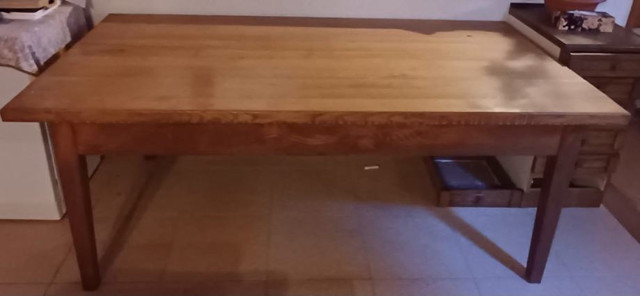 Masivan hrastov stol i klupe, rađeni po narudžbi, skoro nekorišten, duzina 200 širina 110 cmcijena sa klupama 200 eura