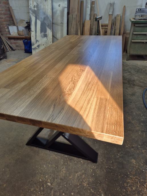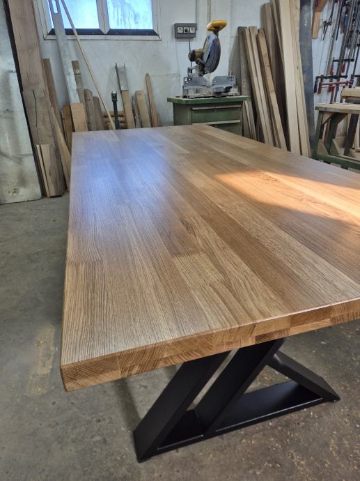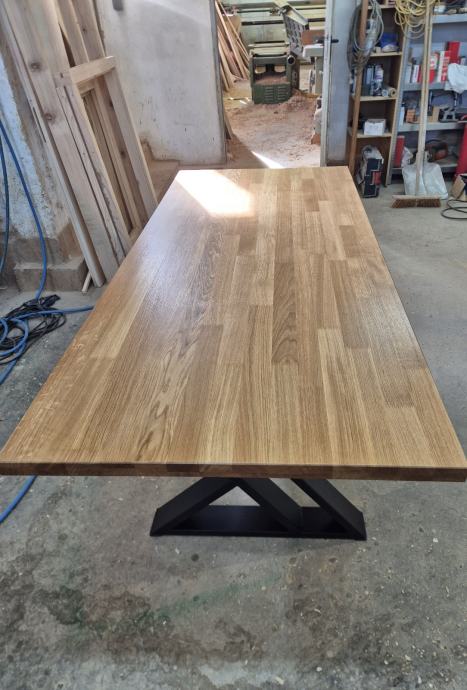 Prodajem hrastov stol 200x90 cm, 3 puta lakiran polumat, noge su zeljezne plastificirane.