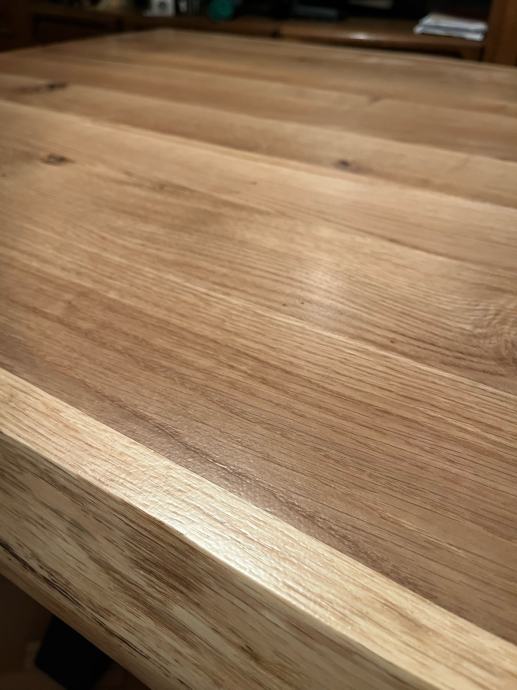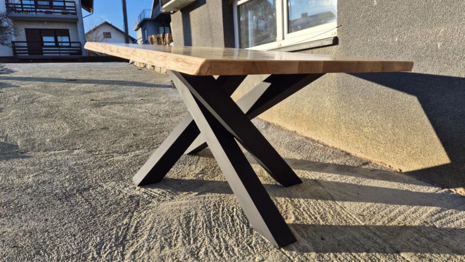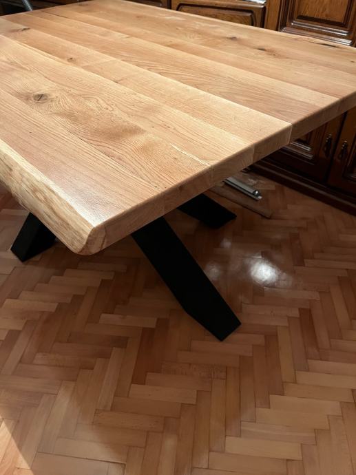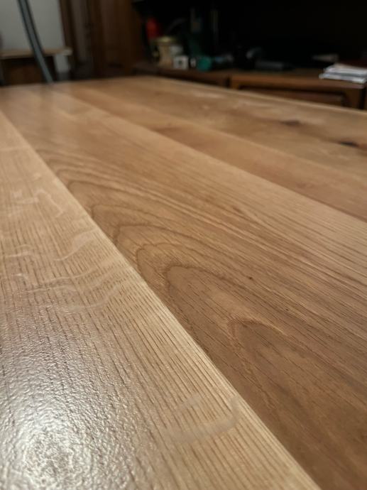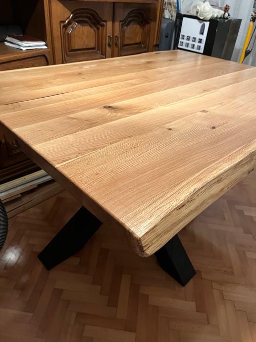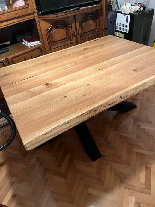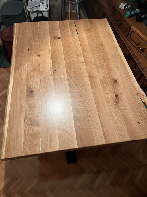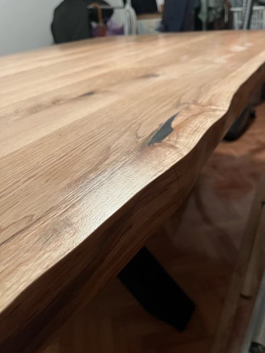 Ploča je rađena od slavonskog hrasta u rustikalnom stilu s prirodnim kosim rubom.