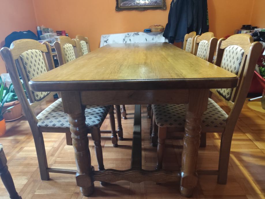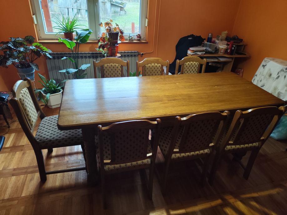 Prodajem hrastov stol 200x83 i hrastovi stolci 8 komada, sve je kao novo malo korišteno, mogućnost dostave do vaše adrese po dogovoru(Kr, Vž, Zg).