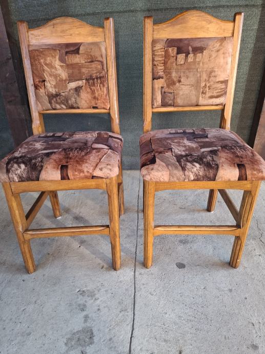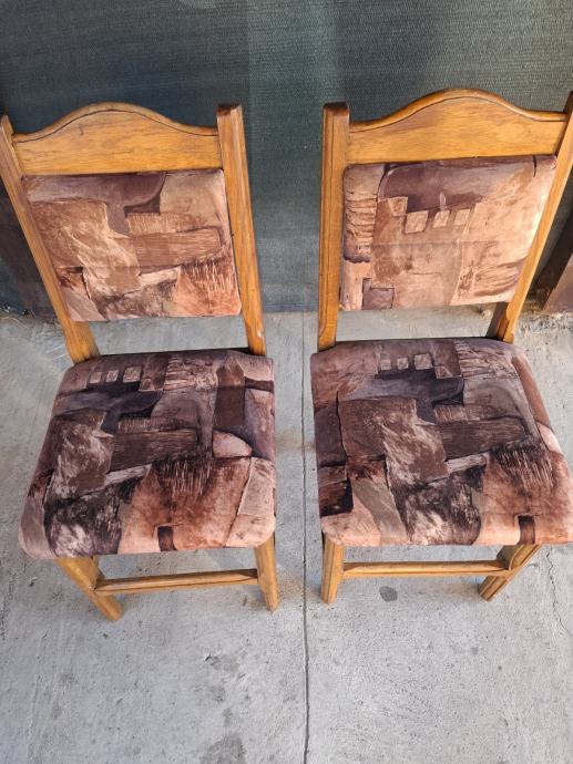 Prodajem šest hrastovih stolica s tapeciranim sjedalima i naslonom. Okvir je izrađen od masivnog hrasta tople, medene boje, dok je tapecirani dio presvučen tkaninom u smeđim i bež tonovima s apstraktnim uzorkom. Stolice su solidne i stabilne, a hrast kao materijal jamči dugotrajnost. Stol gratis ako želite.