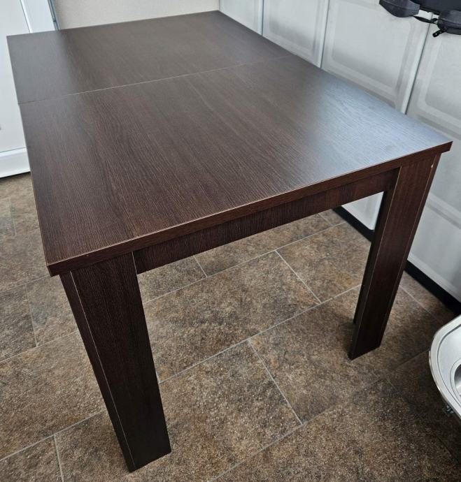 Prodajem Ikea blagovaonski stol na razvlačenje crno smeđe boje dimenzija: 120cm (160) x 80cm (širina) x 75cm (visina).