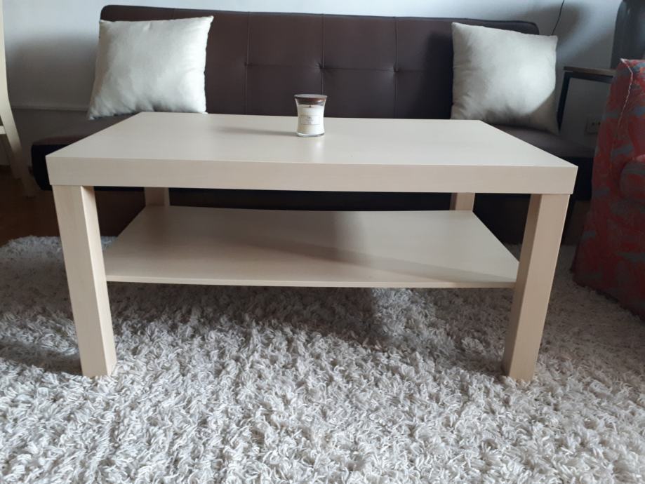 Dobro očuvani stol kupljen u Ikei. Dimenzije 90x55x45. Ima malo oštečenje (zagreban je) na gornjoj plohi. Stol je potrebno osobno pokupiti.